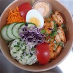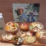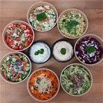 Gemengde salade/ Wortelsalade/komkommer/Koolsalade/ pasta salade/ aardappel salade/tomaat en sausjes.